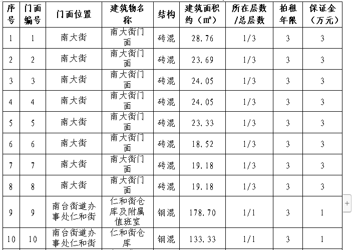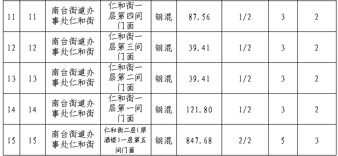 拍租15個國有門面使用權(quán),詳見下表: